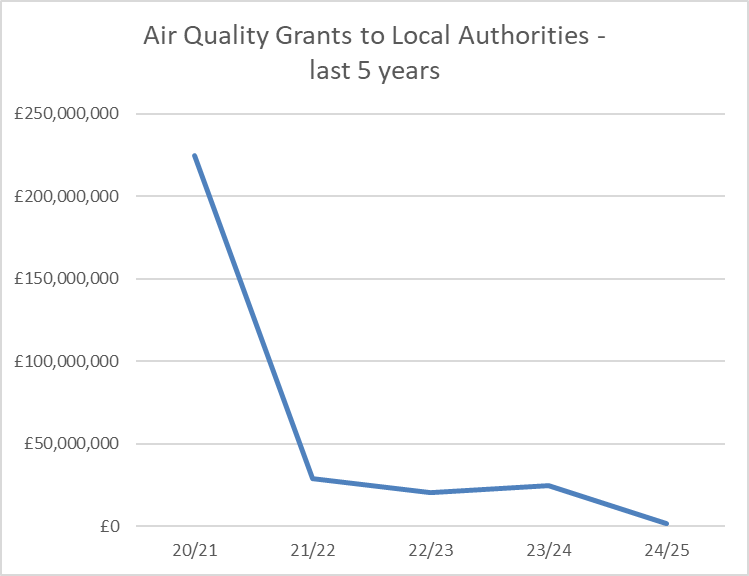 Nonprofit air pollution charity Mums for Lungs has released new figures obtained via a Freedom of Information (FoI) request from DEFRA that shows air pollution budgets cut by 99% since 2016.